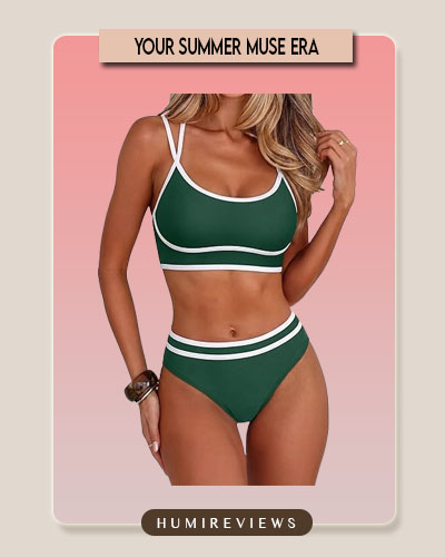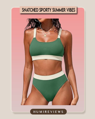 I was lounging by the pool in this deep forest green set when a stranger actually stopped to ask if I played pro tennis—that’s just the high-end, “old money” vibe this sporty color-block gives off. The scoop neck and halter ties provide such solid support that I felt totally secure diving in and playing beach volleyball without a single wardrobe worry. It’s the ultimate “snatched” look that makes you feel like you own the entire resort! 🎾🌲✨