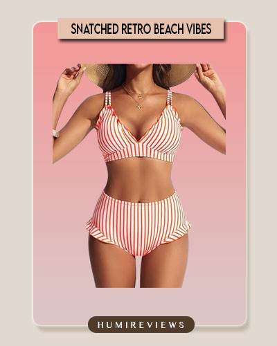 This Hanna Nikole set is the perfect pick for a “Retro Sweetheart” vibe, featuring vibrant vertical stripes that naturally elongate your frame. The high-waisted bottoms are designed with a double-layer front panel for gentle tummy shaping, while the adorable ruffles at the leg openings add a flirty, feminine touch. With its hook-free, slip-on top and adjustable straps, it balances effortless comfort with reliable medium support for all your beach activities. 🍊✨