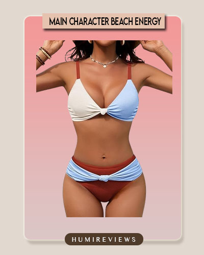 I was headed to the resort bar for a coconut when a group of girls stopped me, convinced I was wearing a high-end designer set they’d seen on Instagram. The unique color-blocking and front-knot details give off such a premium, curated vibe that makes the outfit look instantly expensive. Between the textured ribbed fabric and the cheeky high-cut fit, it’s the ultimate confidence-booster for serving major “Main Character” energy all summer long! 🥥✨