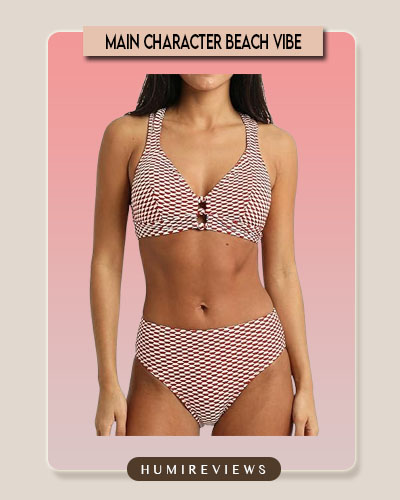 I was grabbing a gelato on a sun-drenched Italian boardwalk when a traveler stopped me just to ask where I got this set—the red and white jacquard texture is such a stunning conversation starter. The unique button-detail center and crisscross back make it feel more like a high-end designer boutique find than just a standard bikini. It’s the perfect “timeless chic” look that keeps me feeling secure and snatched while looking like I stepped straight out of a vintage Mediterranean postcard! 🍨