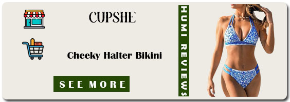 This halter bikini stuns with cutout sides and shell stitching, plus high-cut bottoms to lengthen your legs. Double straps and back hook keep you comfy for pool days and party nights. Removable soft cups add support for all-day confidence.