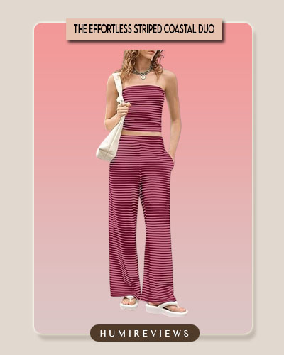 This striped matching set is the definition of chic comfort for the warmer months. The high-quality, stretchy fabric feels like a dream on the skin, staying breathable and lightweight even during those long beach days or airport runs. ✈️ With its flattering wide-leg silhouette and trendy tube top, this outfit delivers an instant put-together look that transitions seamlessly from a lazy lounge morning to a fun night out. 💃 Definitely a versatile staple that belongs in every vacation suitcase! ✨