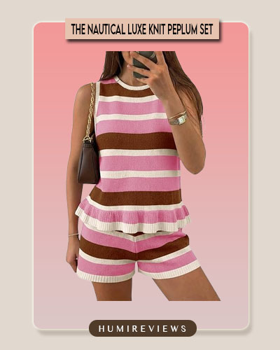 The striped color-block design on this two-piece set is a total breath of fresh air for any summer wardrobe! Its peplum ruffle hem adds a playful, feminine touch to the structured knit, creating a silhouette that is both comfortable and incredibly flattering. ☁️ Crafted from soft, lightweight knit fabric, it strikes the perfect balance between high-end loungewear and a chic vacation outfit that holds its shape all day long. ✨ This is a versatile staple you’ll reach for constantly—whether you’re styling it with sandals for a garden stroll or wearing the pieces separately for a personalized look! 🥂