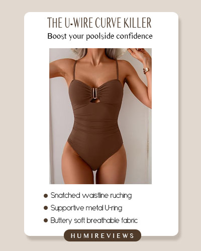 This U-wire one-piece is a total game-changer. The ruched waist instantly slims your silhouette while the metal detail gives you that snatched, high-end look. You’ll feel stress-free! 👙✨